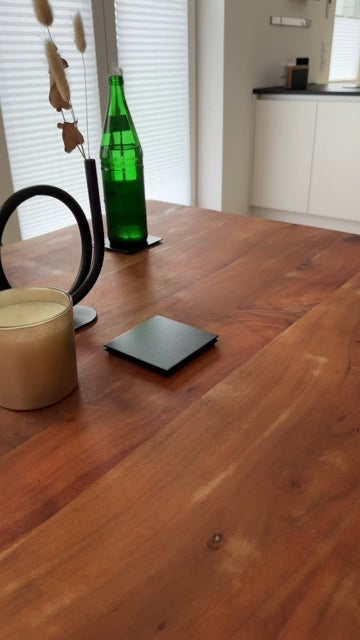Entdecke unsere hochwertigen Untersetzer mit unserem typischen, modernen und schlichten Design. In elegantem Schwarzmatt und aus Aluminium gefertigt, verleihen diese Untersetzer deinem Wohnraum eine zeitgemäße Ästhetik.